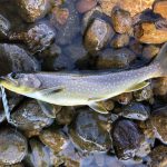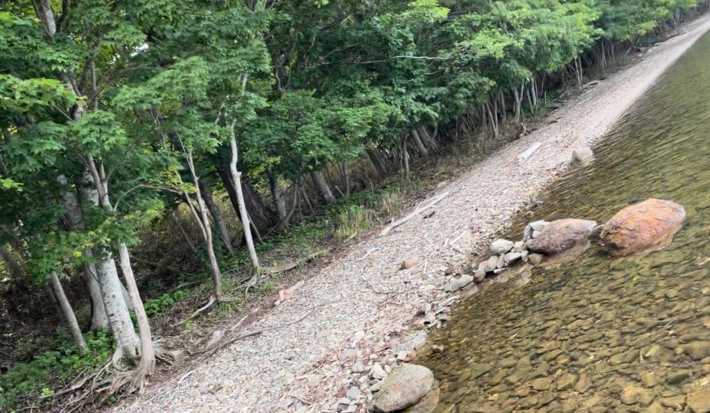 小さなアメマスや、ウグイが岸際で陸生昆虫を捕食していた。