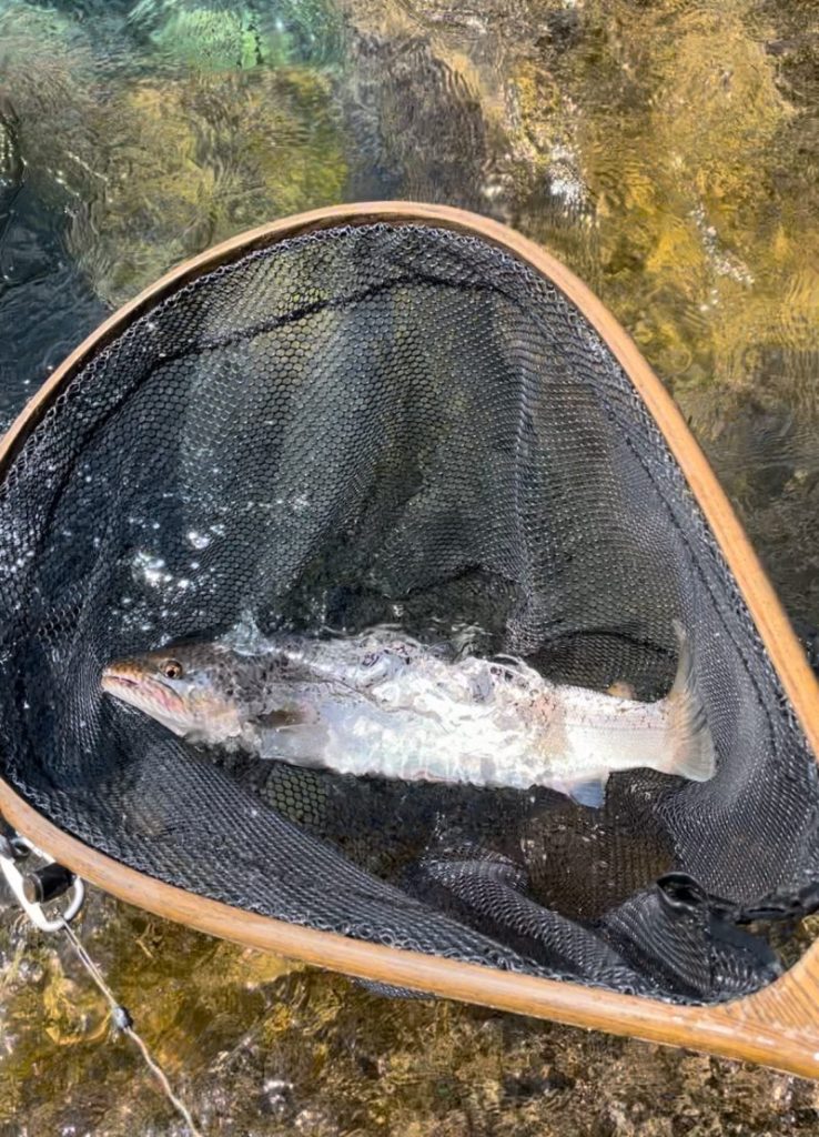 今シーズン初支笏湖で銀白色の強い降海型と思われる52センチのブラウンを手にすることができ、満足して帰宅する。