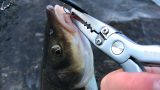 ルアーはシマノ トライデント90s(アカキン)を使用し、1秒間1回転を意識しながらタダ巻きを行う。